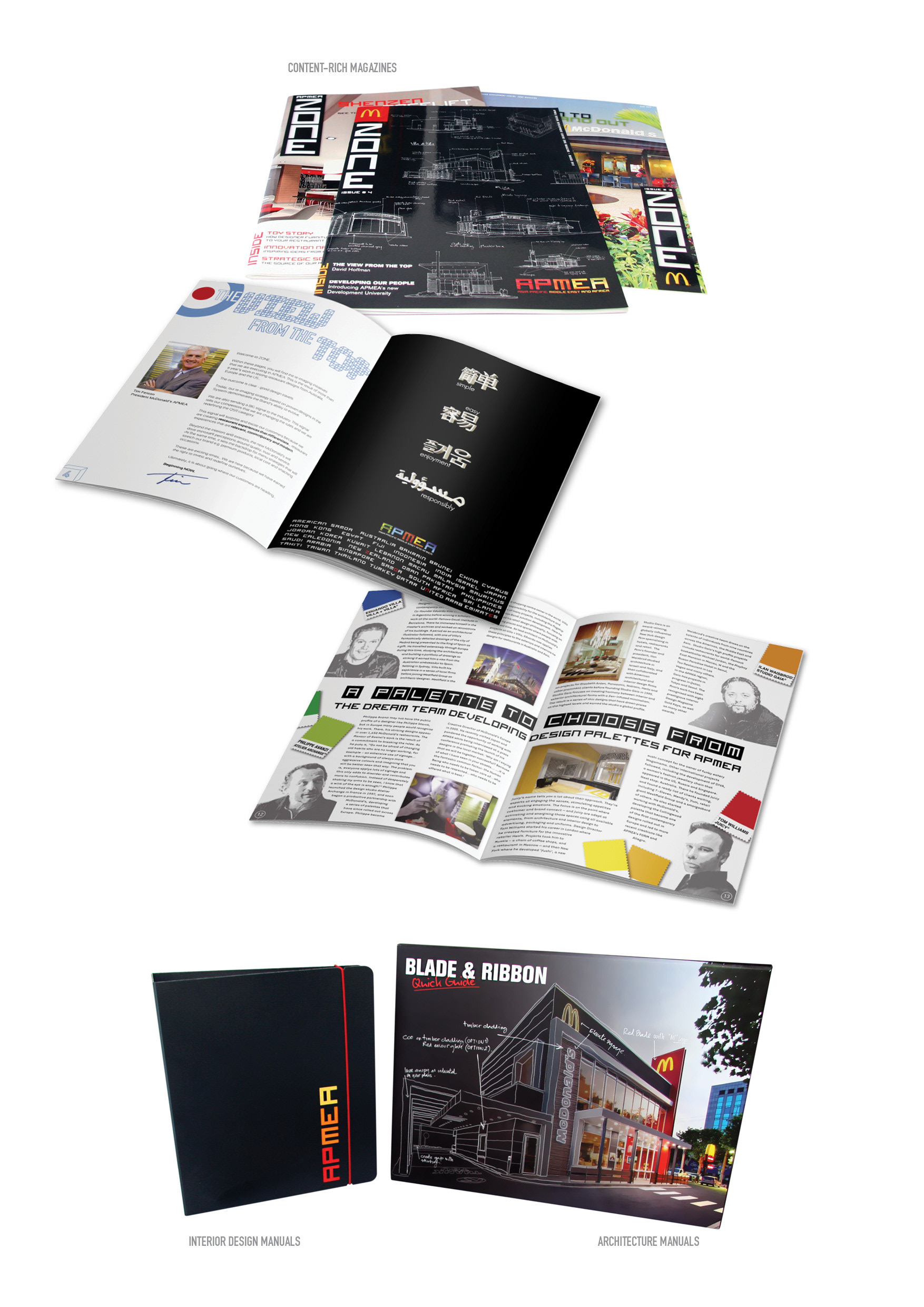 Promote the McDONALD’s APMEA Design & Development Centre (ADDC) system-leading work on architecture, interior design and service enhancement to global management in the US and to stakeholders across the region, from country managers to regional partners and local franchisees.